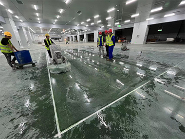 水性聚氨酯和金刚砂粉料搅拌均匀,聚氨酯的硬度高,耐磨耐高温低温,不易划伤;