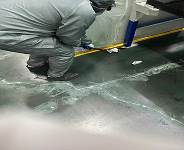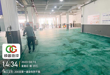 当厂房原金刚砂地坪需要重新染色翻新时,应将原地坪存在的地面龟裂纹和裂缝等问题,采取相应的措施进行修补翻新。